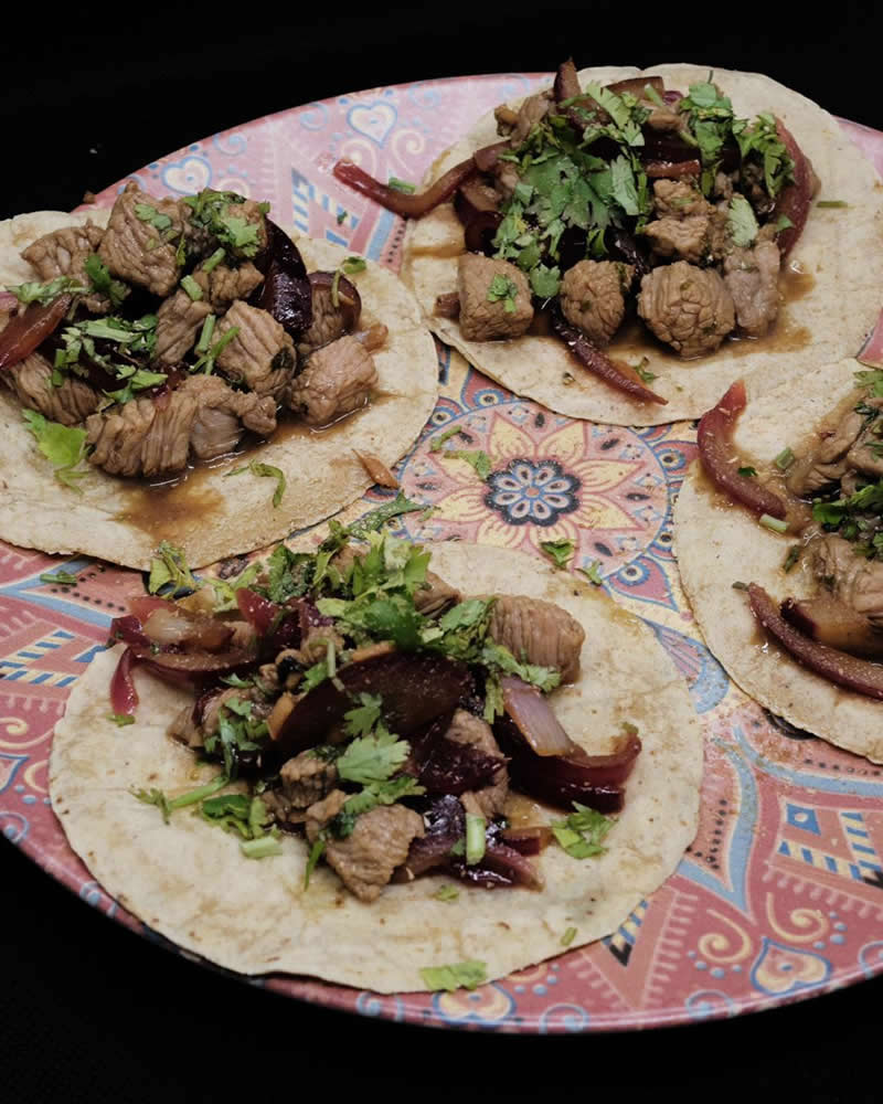 jugoso solomillo con cebollita morada, jengibre, lima